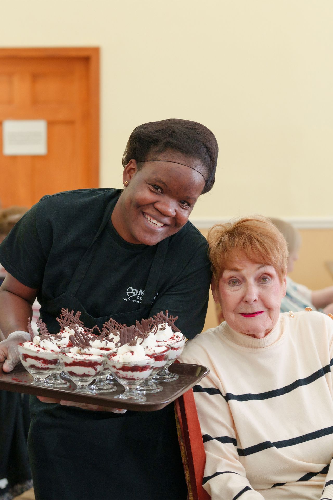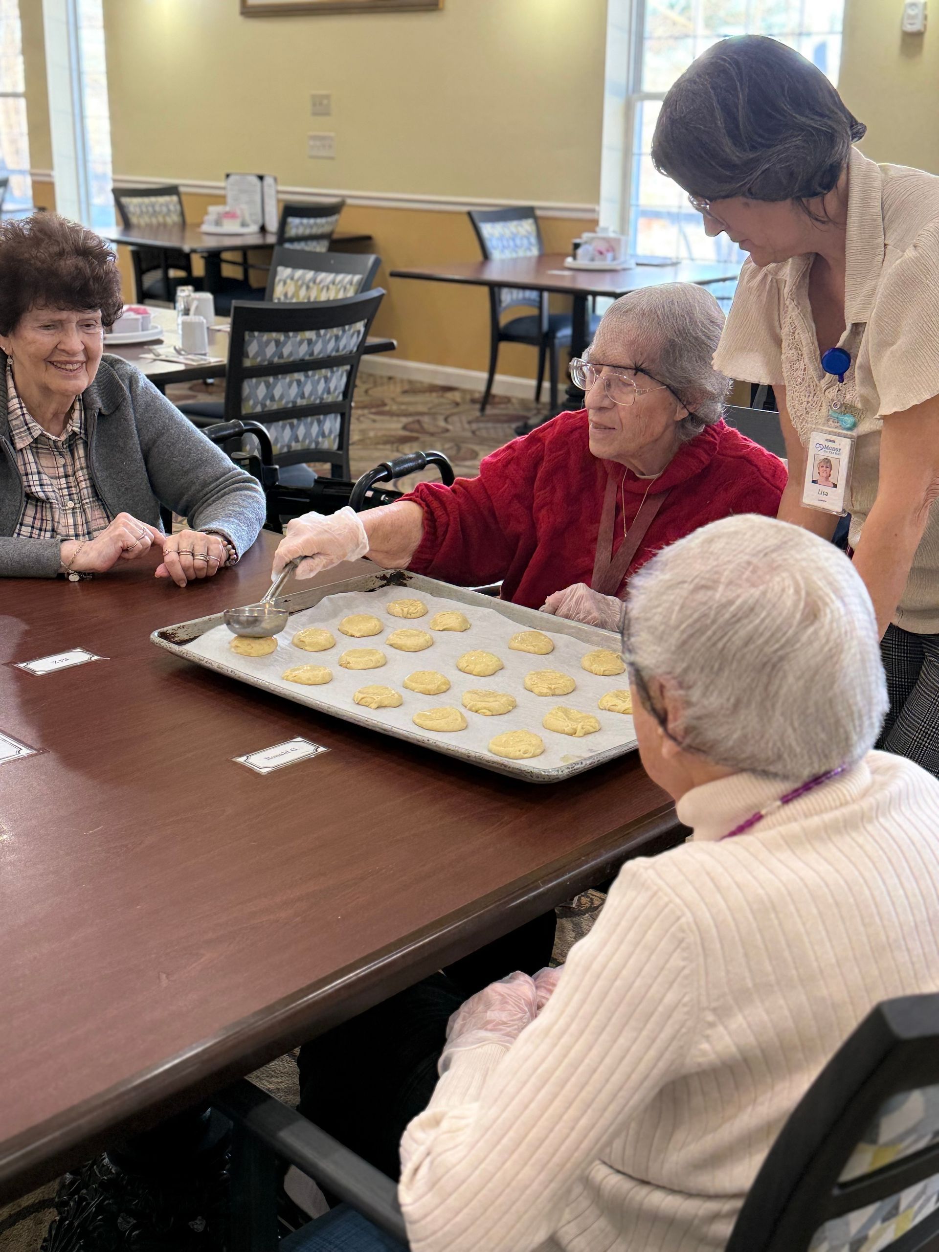 - Restaurant-style dining rooms where residents enjoy meals in a warm, social atmosphere.